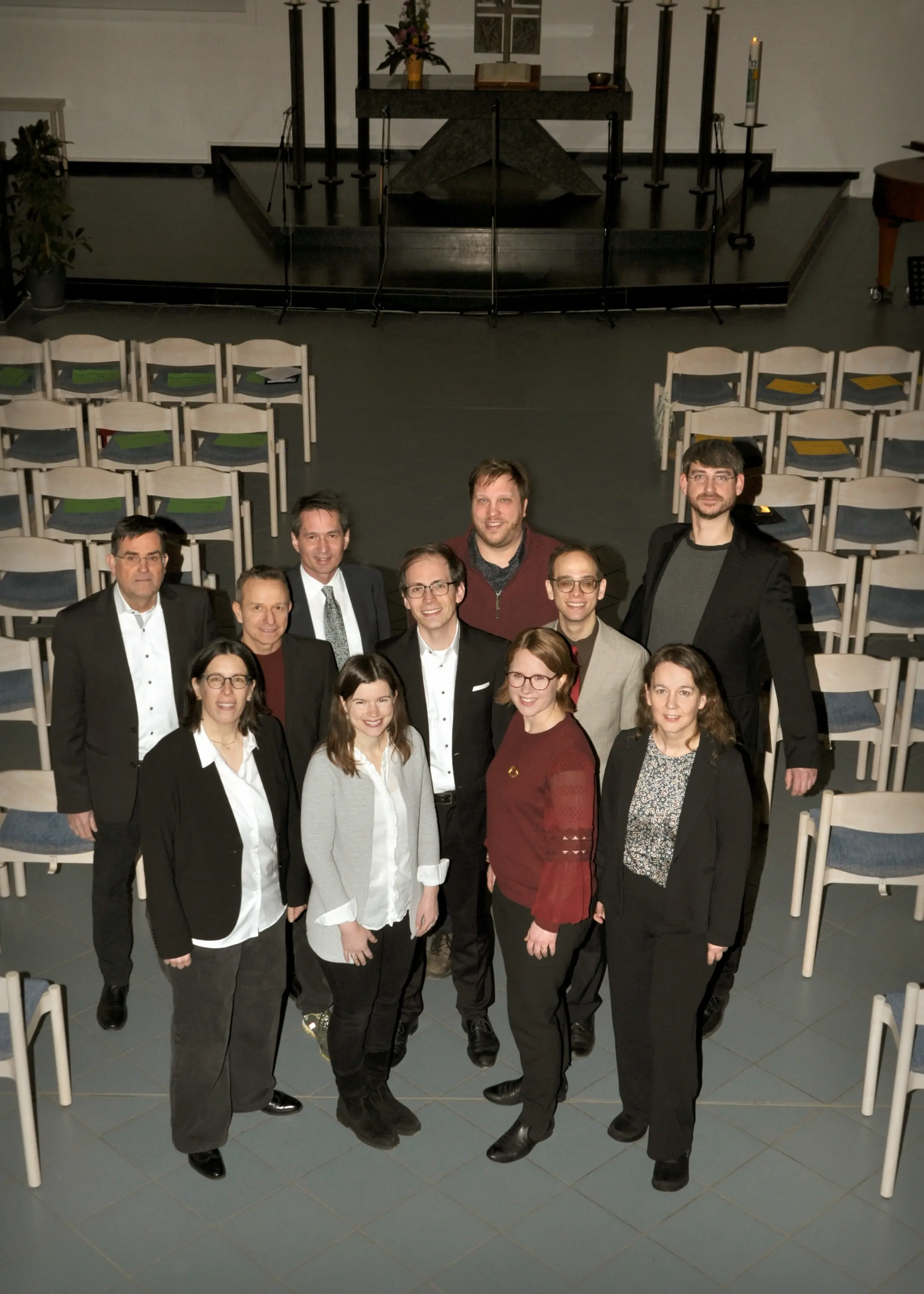 Am Sonntag Sexagesimae (8.2.26) fand in der Stephanuskirche einen Festgottesdienst statt, in dem das Verkündigungsteam des Nachbarschaftsraumes 2 – Frankfurt West – in sein Amt eingeführt wurde. Das erwartungsgemäß umfangreiche Programm begann mit einer originellen Vorstellung der Personen des Verkündigungsteams: jede/r musste je eine Frage der Kinder von den mitwirkenden Kinderchören aus Griesheim und Unterliederbach beantworten. Die Kinder wollten z.B. wissen: Was bedeutet für dich Verkündigung? Was ist für dich der Heilige Geist? Was bedeutet für dich Nachbarschaftsraum? Die Herausforderung dabei war, eine schlüssige Antwort innerhalb von 30 Sekunden zu geben, denn wer will schon 11mal hintereinander minutenlange Monologe hören. Diese Aufgabe wurde von den acht Pfarrerinnen und Pfarrern, zwei Kirchenmusikern und einem Gemeindepädagogen mit Bravour gelöst.