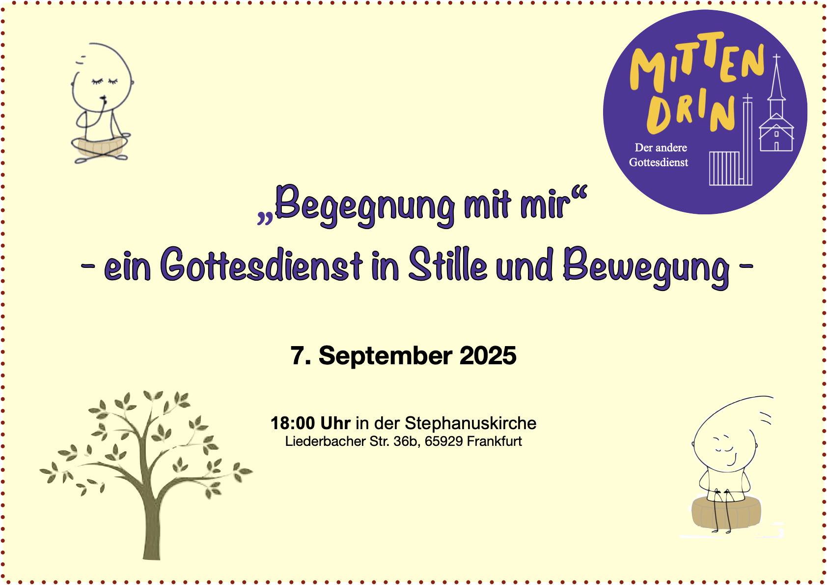 07. September 2025: Begegnung mit mir - ein Gottesdienst in Stille und Bewegung