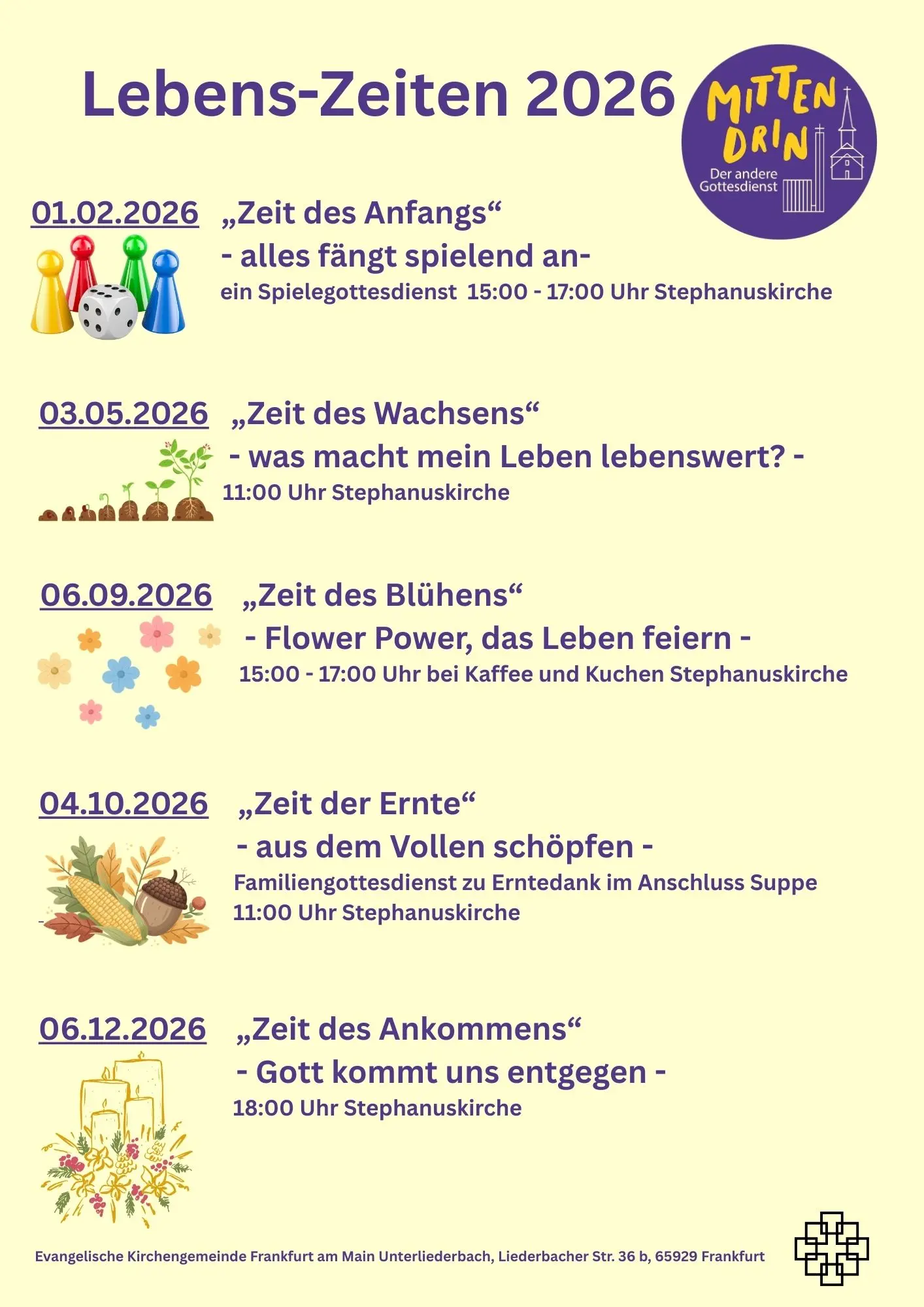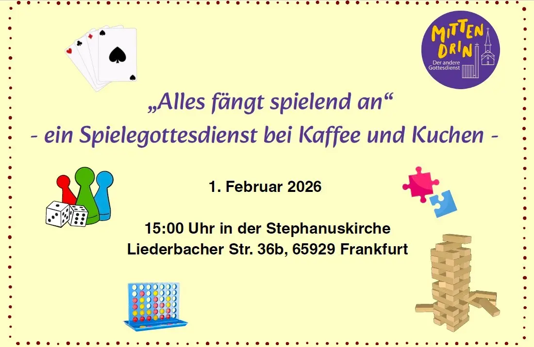 Neben unserem 'normalen' Gottesdienst bieten wir seit einigen Jahren auch einen alternativen Gottesdienst an, in dem jede:r herzlich willkommen ist. Dieser soll nochmal auf andere Weise Gott im Alltag erlebbar machen. Wir wollen Neues ausprobieren, Liebgewonnenes bewahren, Kirche zum Mitmachen sein und Raum für Begegnung und Austausch bieten. Wir wollen sozusagen mittendrin sein im (Gemeinde-)Leben.
